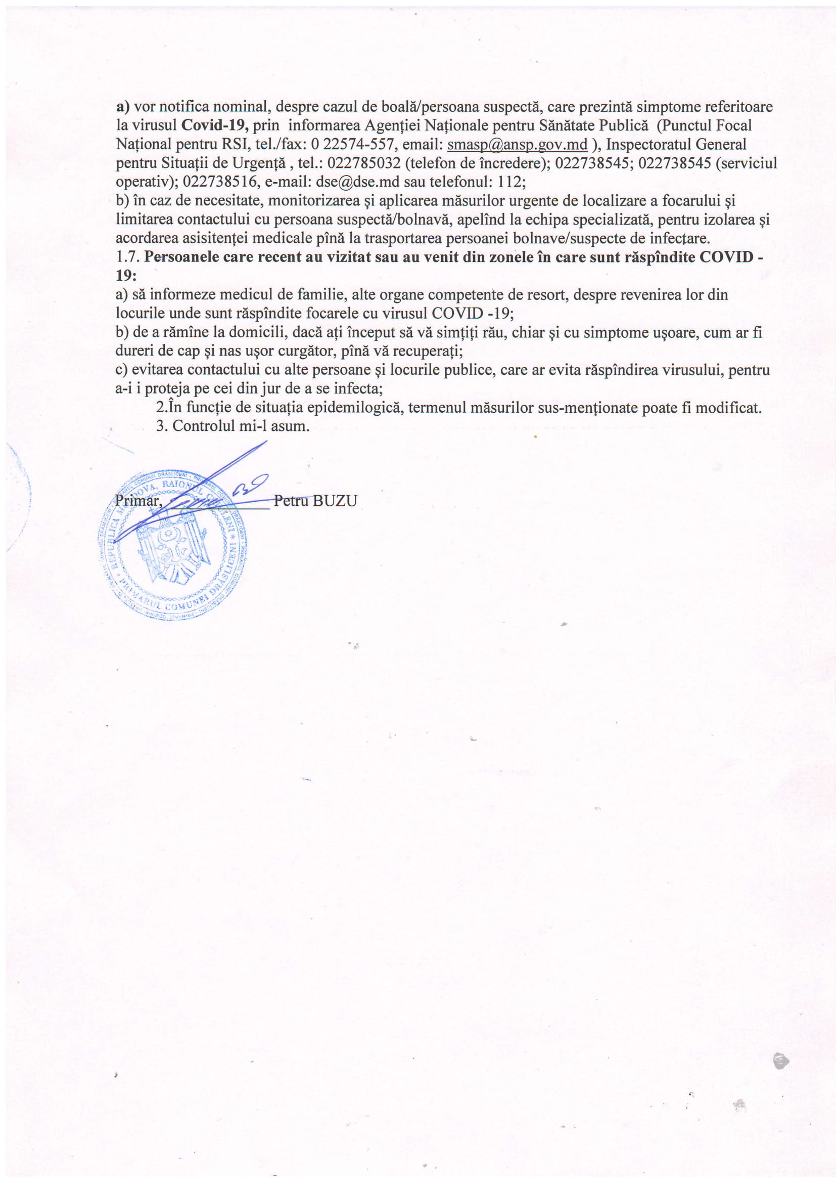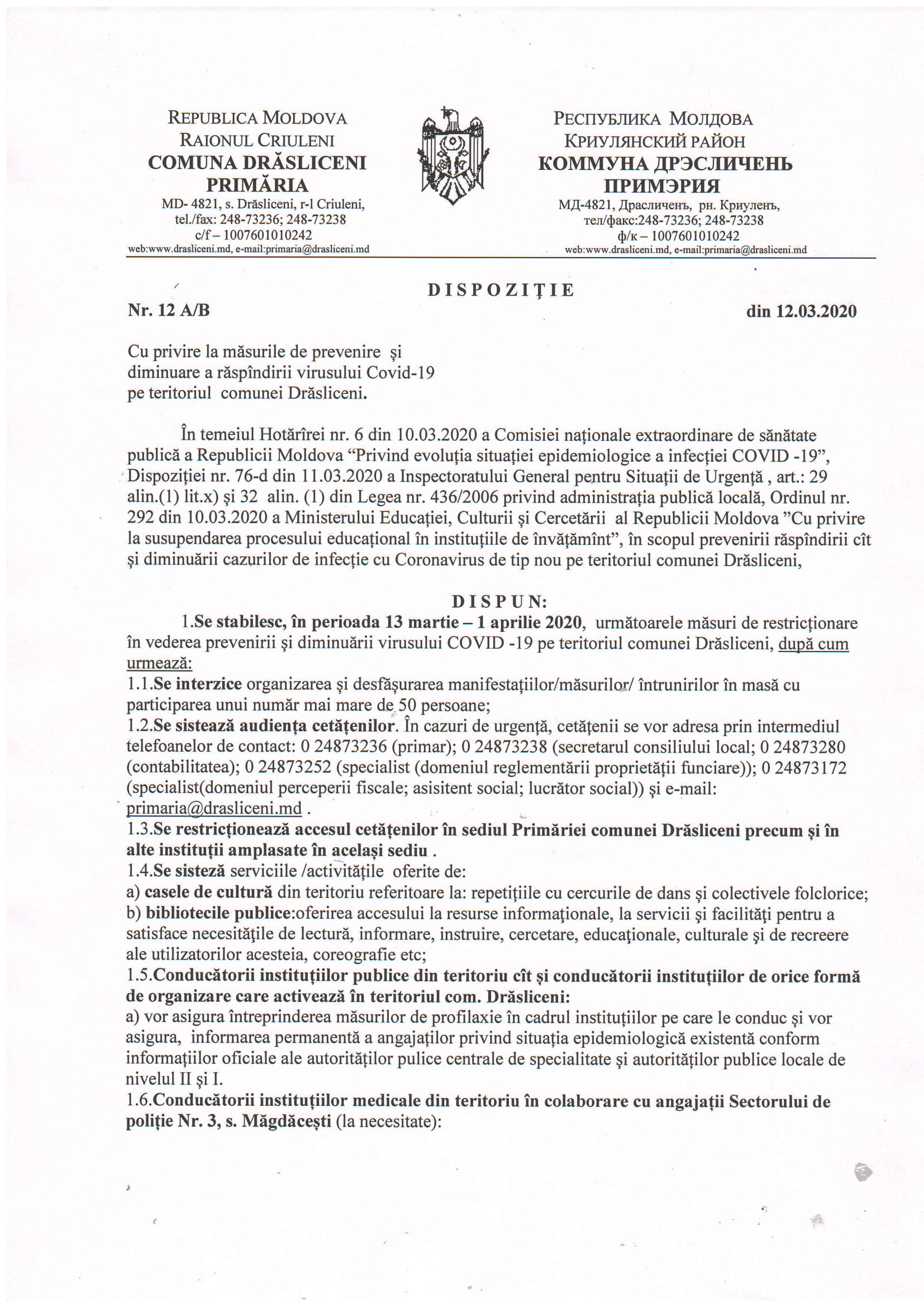Dispoziție nr.12 AB din 12.03.2020